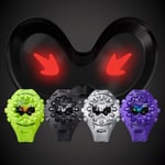 Sometimes enthusiastically named the G-SHOCK “alien eyes” by fans, the GAV01 collection is a new take on classic G-SHOCK protection. Full of vibrancy, the original shock-resistant design brings the indices outside, melding them with the bezel and opening up the dial for a fresh look. The raised indices help to protect the spherical mineral glass, showcasing one of many design features that not only look awesome and edgy but serve to give the GAV01A-8A that characteristic G-SHOCK toughness. The indices and easy- to-use silver buttons emerge from the silver resin case, bezel, and band of the watch: an organic flow that feels uniform and whole.