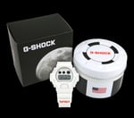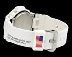 Sporting a crisp, matte white finish, the DW6900NASA237 features a full resin case, bezel, and band, making for a minimalistic yet bold look on the wrist. To further commemorate the brand, the timepiece displays the NASA logo on the lower band and “National Aeronautics and Space Administration” on the upper band. Additionally, an American flag can be found on the band loop and a depiction of the Earth is engraved on the case back, as well as appearing in the watch face when the EL backlight is activated. Lastly, as with many limited-edition models, the watch comes in special packaging that features an outer box with the moon set against a semi-matte black background and an inner tin of black and white, emblazoned with the American flag and the brand’s logo.